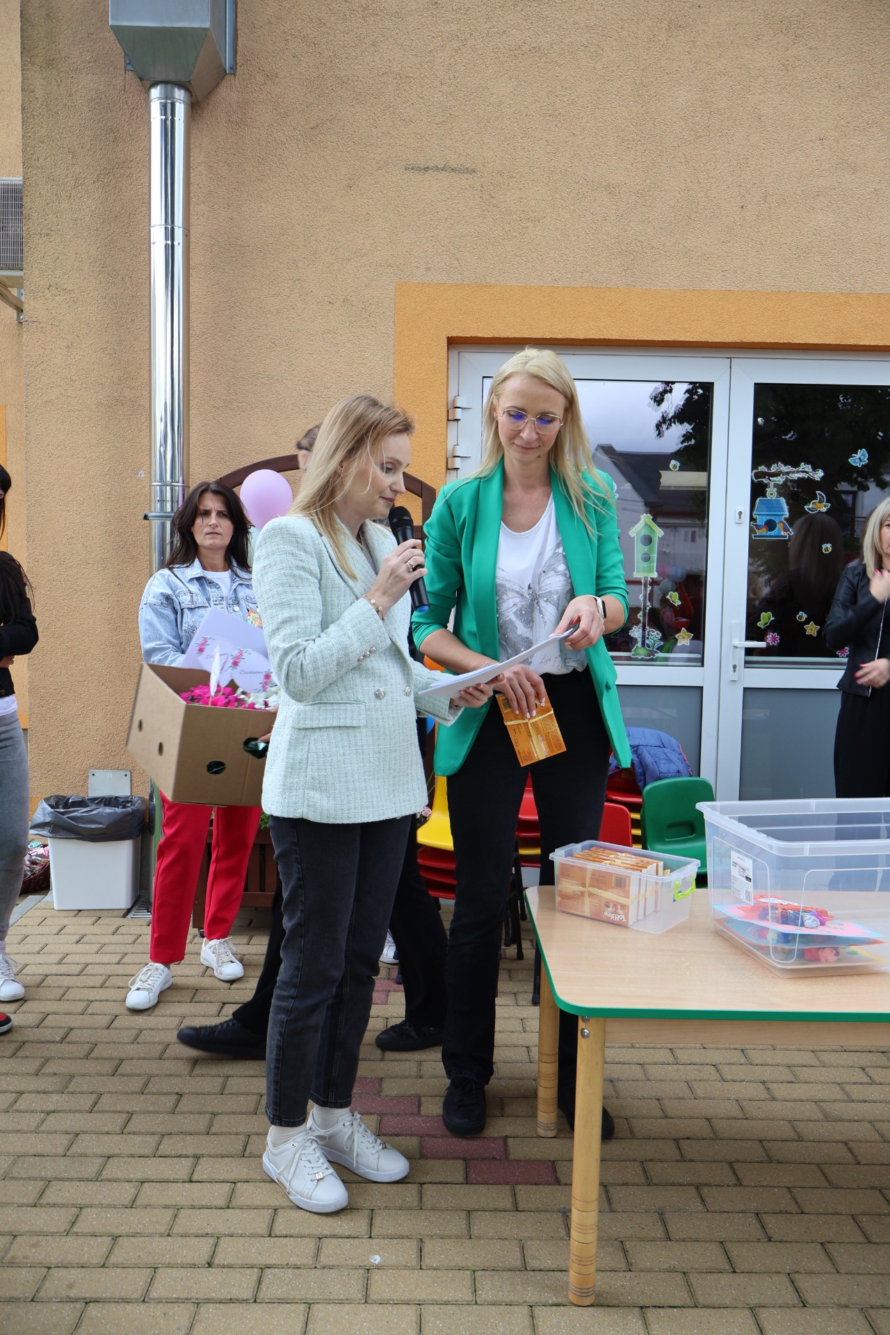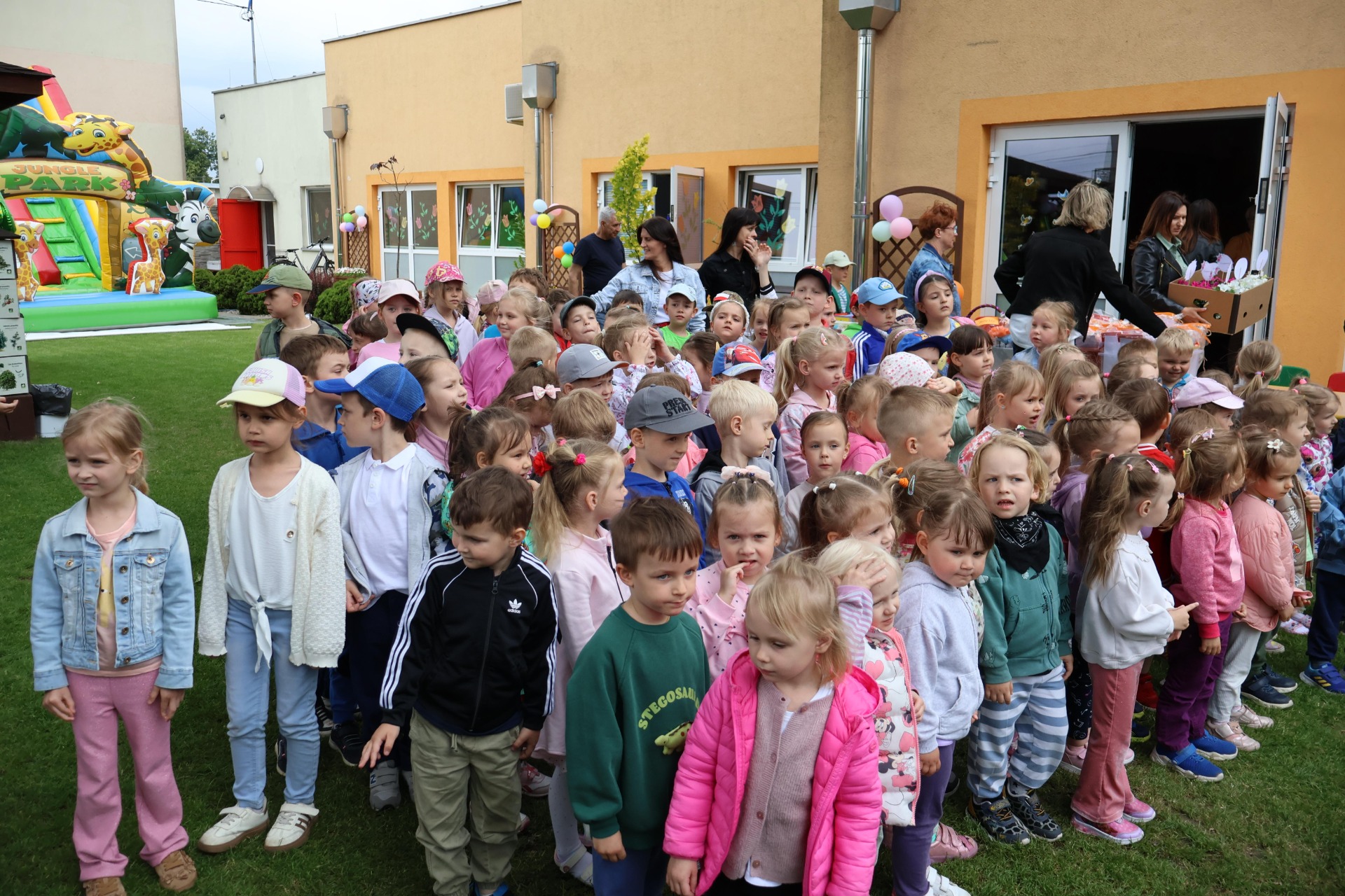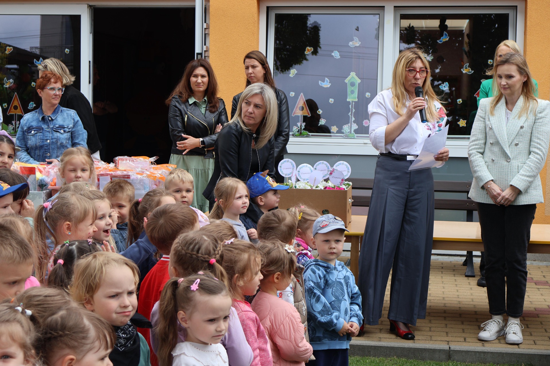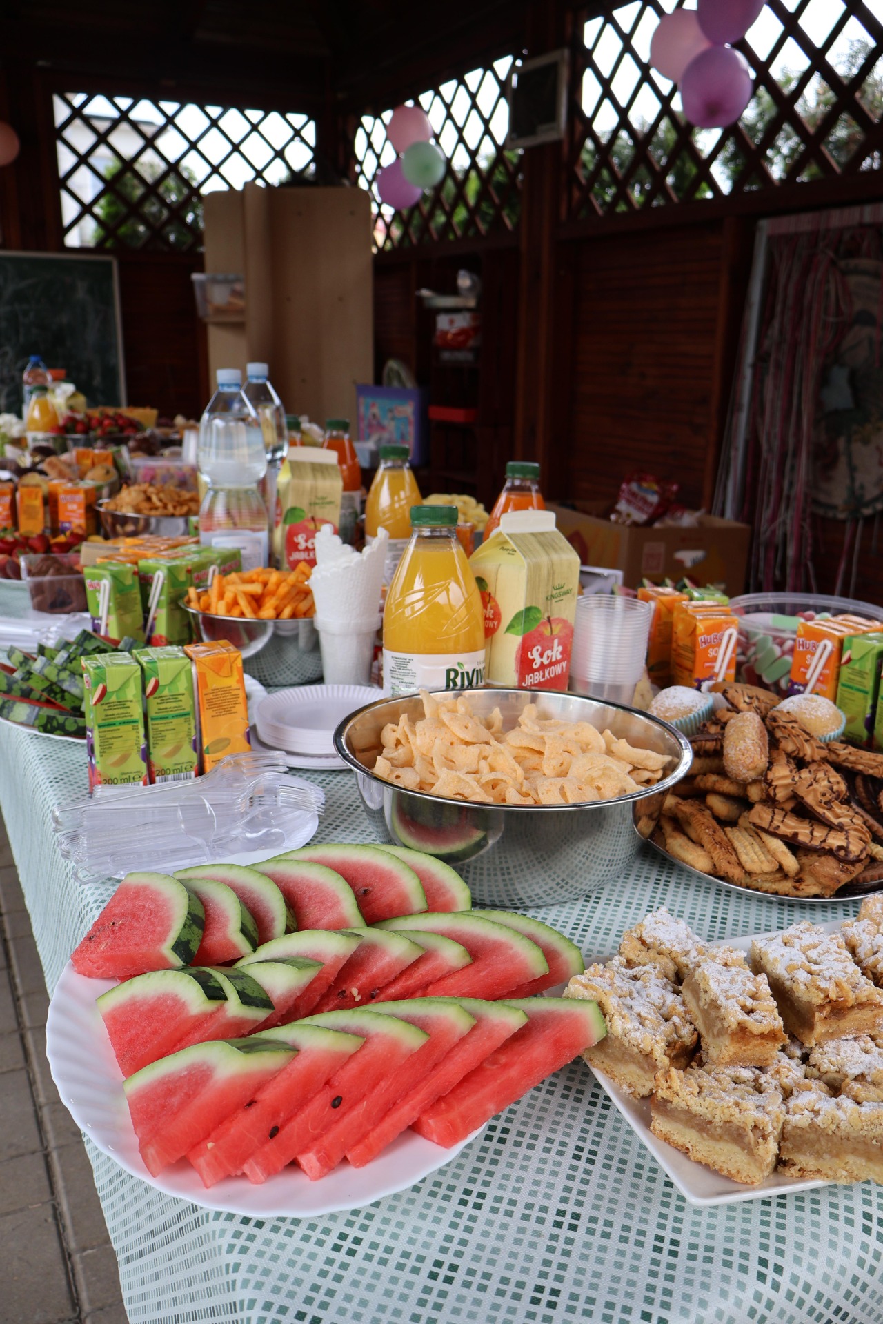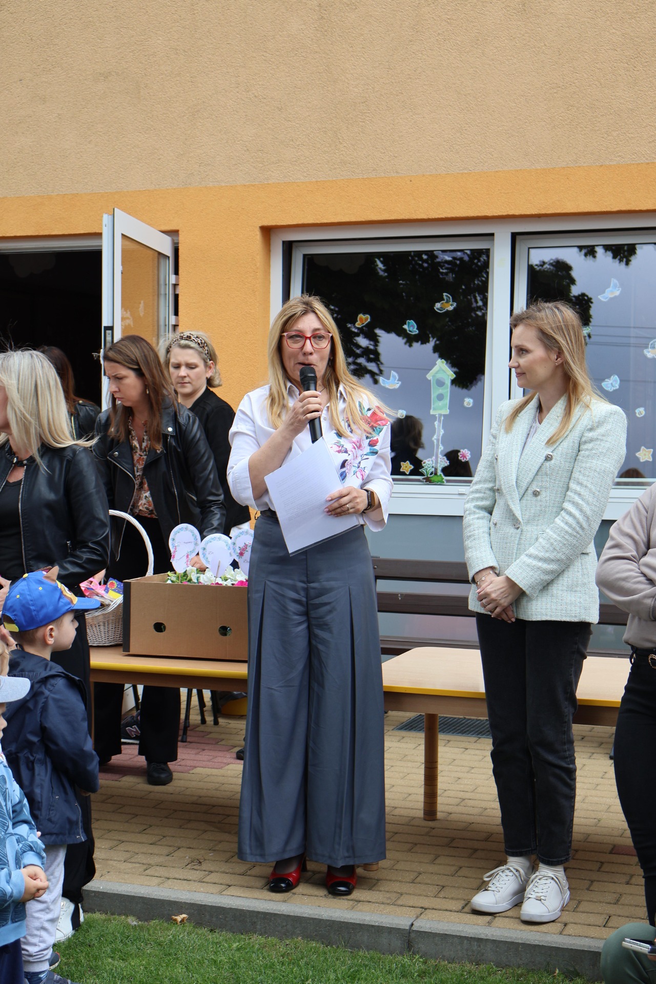 30 maja w ogrodzie przedszkolnym odbył się piknik z okazji Dnia Mamy, Dnia Dziecka i nadchodzącego Dnia Taty. Impreza rozpoczęła się o godzinie 14.00. Piknik otworzyła p. Dyrektor, która powitała przybyłych gości. Następnie dzieci zaprezentowały krótką akademię przygotowaną na tę okoliczność, a nauczycielki wręczyły podziękowania rodzicom zaangażowanym w sposób szczególny w życie grup. Przedszkolaki wręczyły także rodzicom przygotowane własnoręcznie prezenty, a potem nadszedł czas na rodzinną zabawę i szaleństwo. A atrakcji nie brakowało... :) W specjalnie przygotowanych miejscach można było m.in malować farbami na folii strecz, zrobić sobie tatuaż, pobawić się z animatorką, czy też poszaleć na dmuchanej zjeżdżalni. Wszyscy mogli swobodnie korzystać z placu zabaw, a także skosztować słodkiego poczęstunku. Rodzinny nastrój oraz przyjemna atmosfera, sprawiły radość zarówno dzieciom, ich rodzinom, a także wszystkim pracownikom Przedszkola. Wszystkim osobom, które przyczyniły się do organizacji pikniku serdecznie dziękujemy :).
