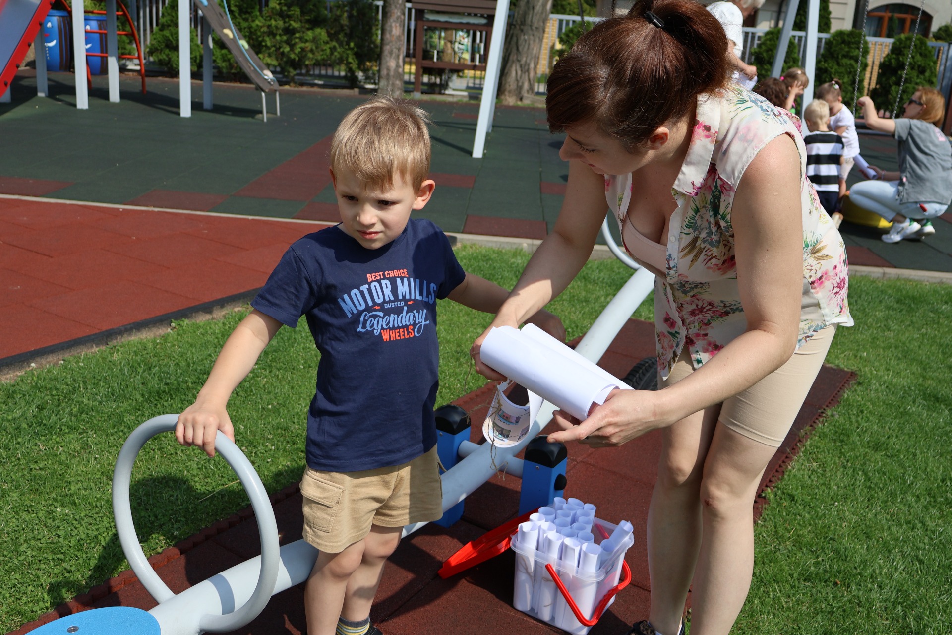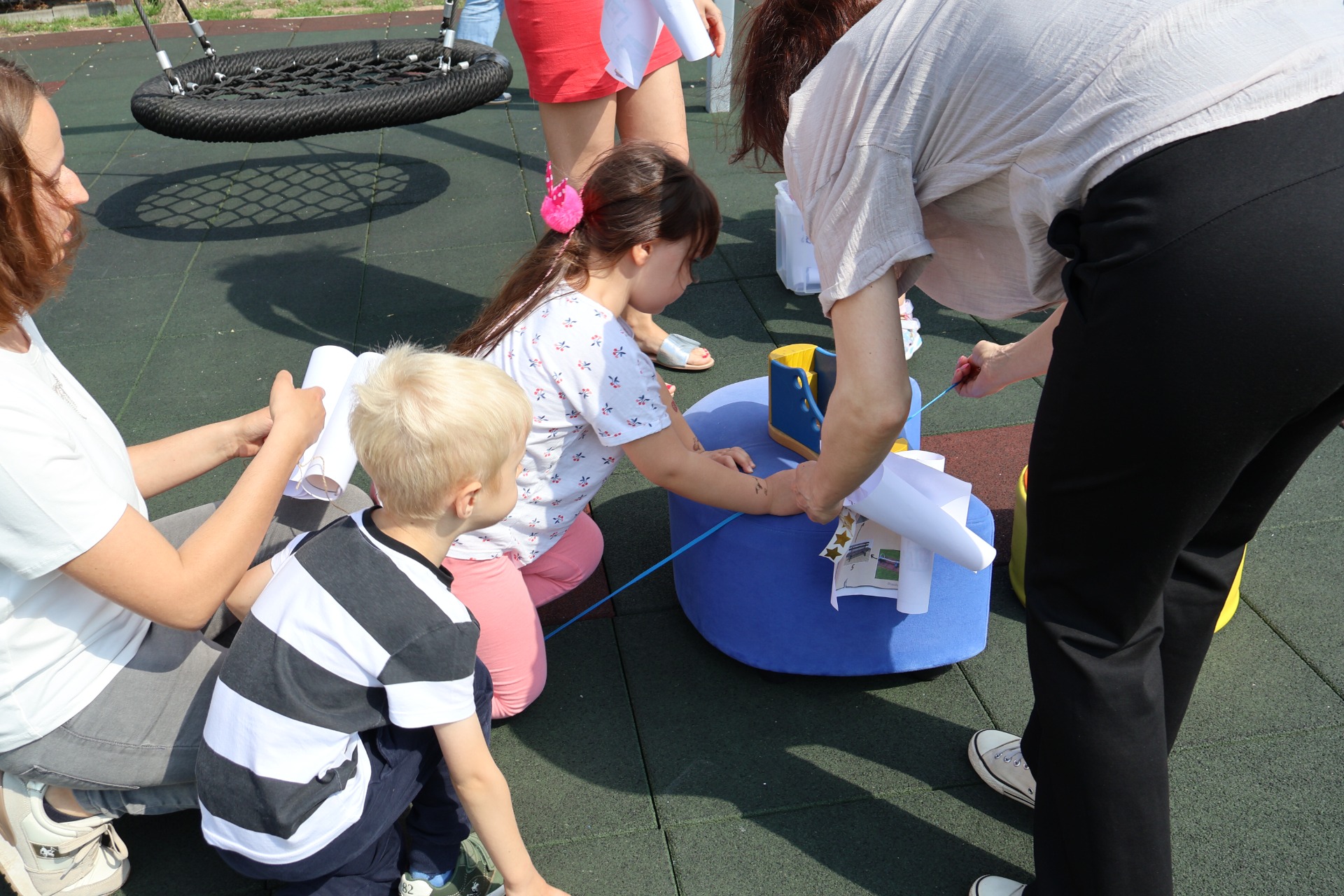 Dzieci z grupy Piraci wraz z rodzicami uczestniczyli we wspólnych zabawach zorganizowanych pod hasłem "Poszukiwanie skarbu Piratów". Każdy musiał poruszać się zgodnie z mapą, na której zaznaczone zostały zadania do wykonania. Pirat, który wykonał wszystkie zadania otrzymał złote monety oraz dyplom poszukiwacza skarbów. Wspólna zabawa dała wszystkim wiele radości i uśmiechu.