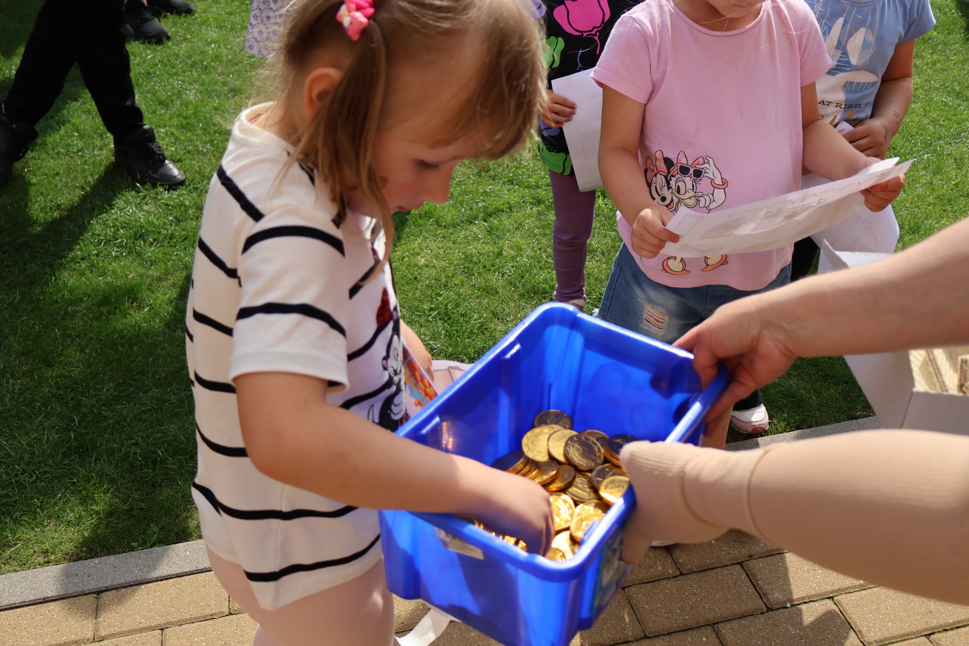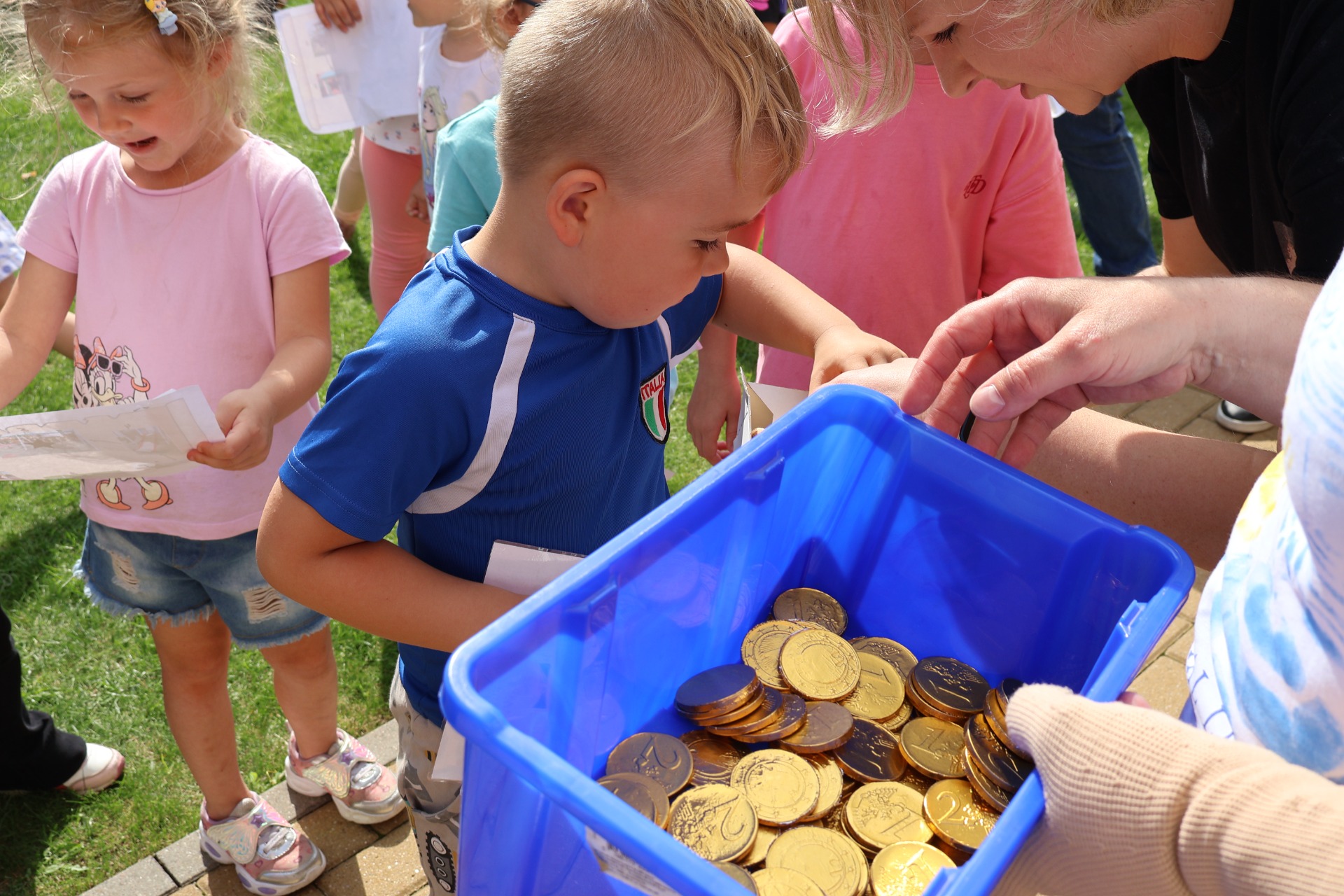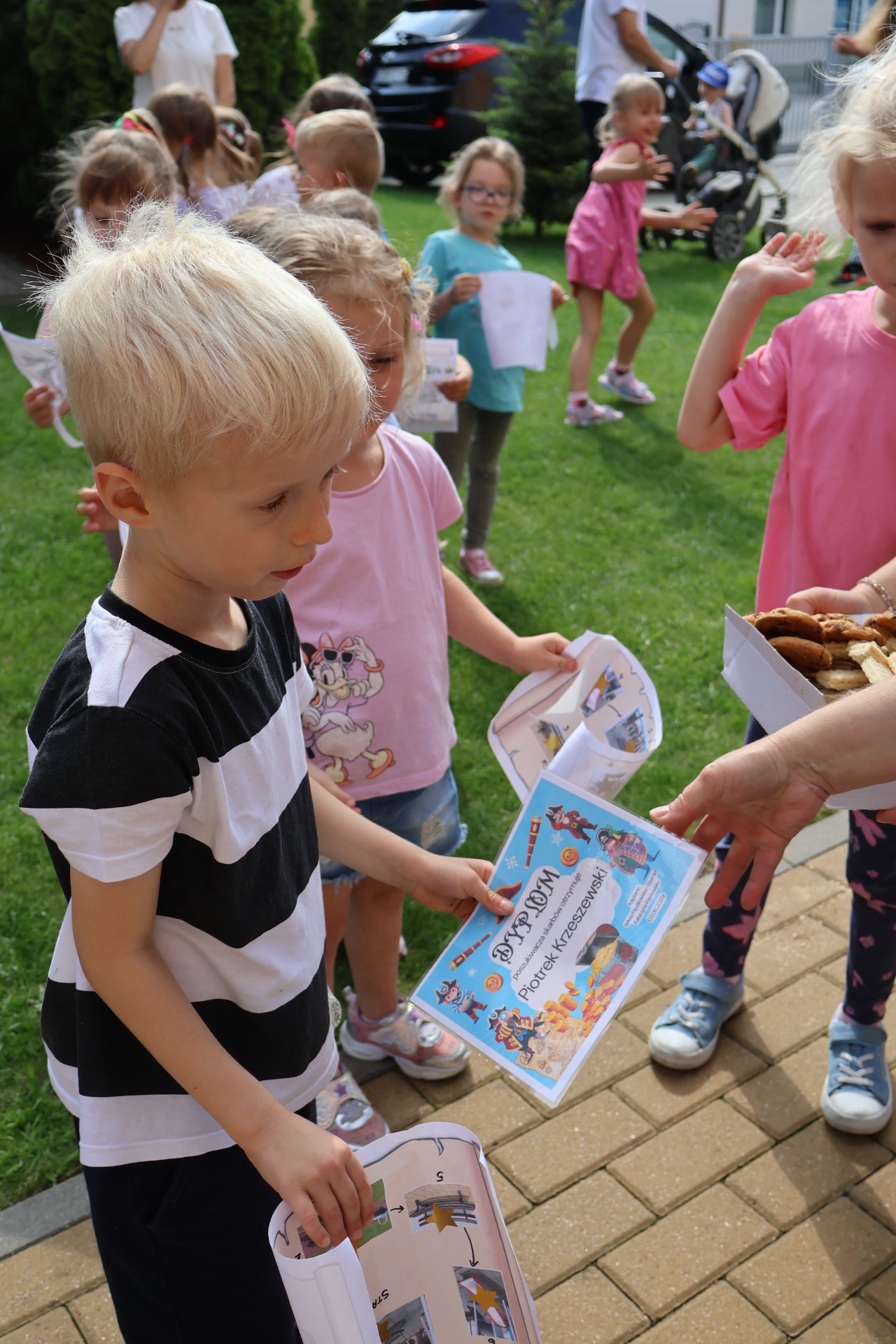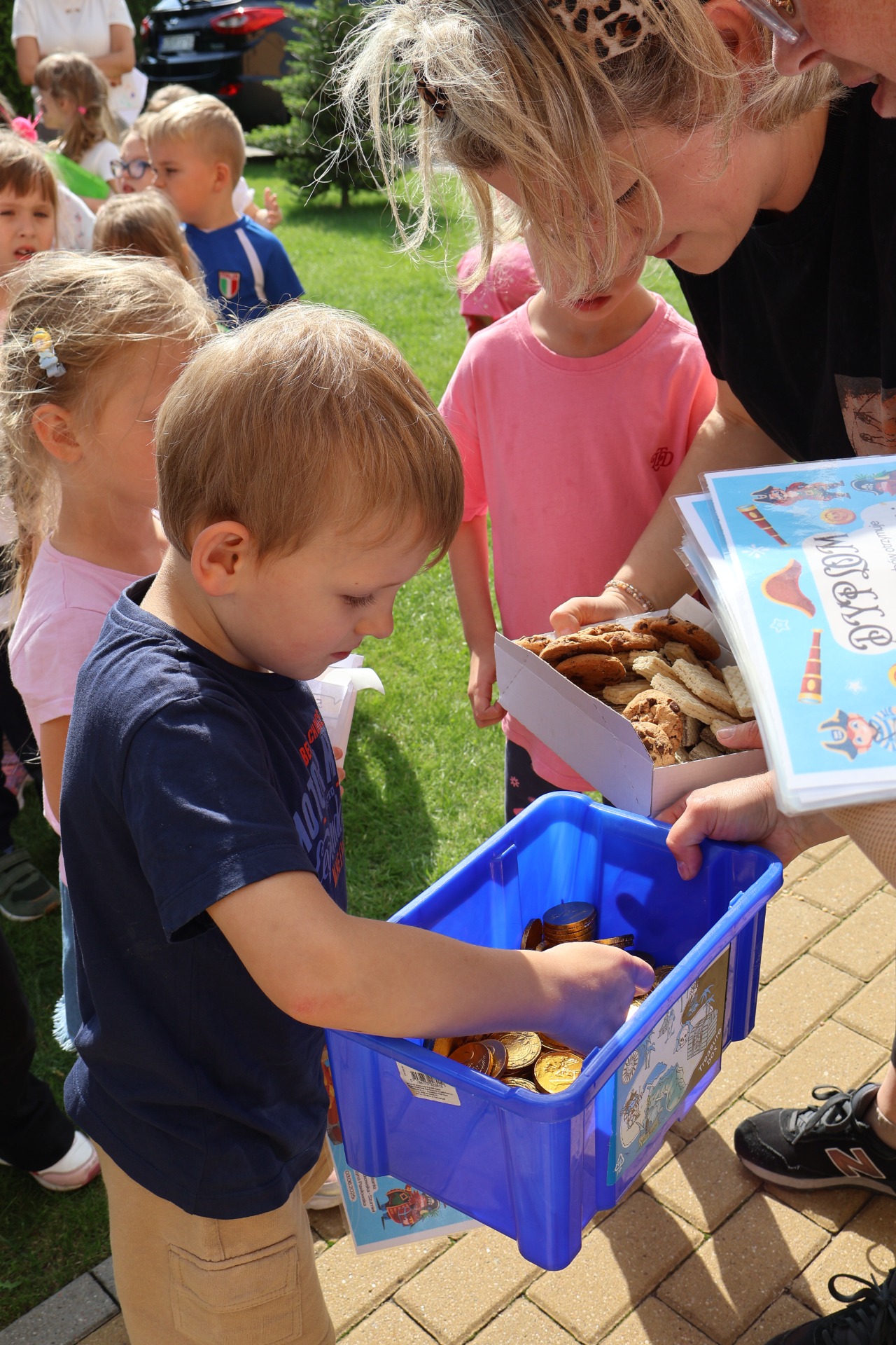 Dzieci z grupy Piraci wraz z rodzicami uczestniczyli we wspólnych zabawach zorganizowanych pod hasłem "Poszukiwanie skarbu Piratów". Każdy musiał poruszać się zgodnie z mapą, na której zaznaczone zostały zadania do wykonania. Pirat, który wykonał wszystkie zadania otrzymał złote monety oraz dyplom poszukiwacza skarbów. Wspólna zabawa dała wszystkim wiele radości i uśmiechu.