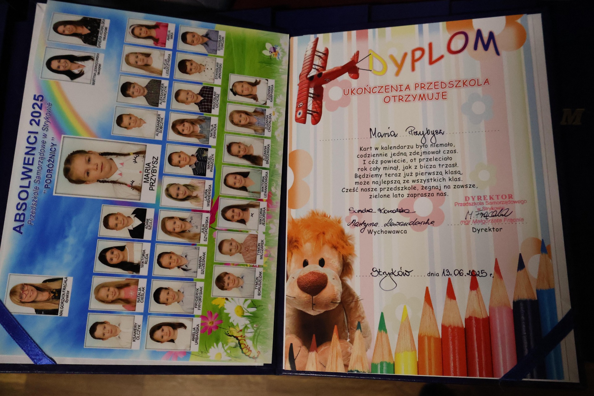 13 czerwca odbyło się uroczyste zakończenie roku szkolnego. Na scenie OKiR w Strykowie zaprezentowały się wszystkie przedszkolne grupy, a wśród zgromadzonych gości oprócz rodziców można było dostrzec również Burmistrza Strykowa, Pana Piotra Ślęzaka. Zgromadzonych gości powitała Pani dyrektor i zaprosiła do obejrzenia niezwykłej opowieści przygotowanej przez dzieci żegnające się z przedszkolem. A była to historia nieznośnej żabki, która nie słuchała swoich rodziców. Piękne stroje, dekoracja i gra aktorska połączona z niezwykłymi tańcami zachwyciła zgromadzonych gości. Potem przyszedł czas na prezentację talentów młodszych przedszkolaków, które również wpisały się w klimat wprowadzającego przedstawienia. Na scenie zagościły piękne kwiaty, motyle, chrząszcze i dzieci pląsające na łące. Aż wreszcie nadszedł czas pożegnania. Najstarsze przedszkolaki rozpoczęły tę część uroczystości pięknym walcem, były też słowa pożegnania i czas na podziękowania dla całej przedszkolnej kadry i rodziców, bez których wiele zaplanowanych pomysłów i działań nie udałoby się zrealizować. Finałowy akordem spotkania był film-niespodzianka przygotowany dla dzieci przez rodziców i wychowawców. Jeszcze raz bardzo serdecznie dziękujemy rodzicom Tropicieli za pomoc, wsparcie i życzliwość nie tylko w przygotowaniach tej uroczystości, ale za owocną współpracę, która trwała 4 lata i pozwoliła nam wiele zdziałać dla dobra dzieci. DZIĘKUJEMY 😊