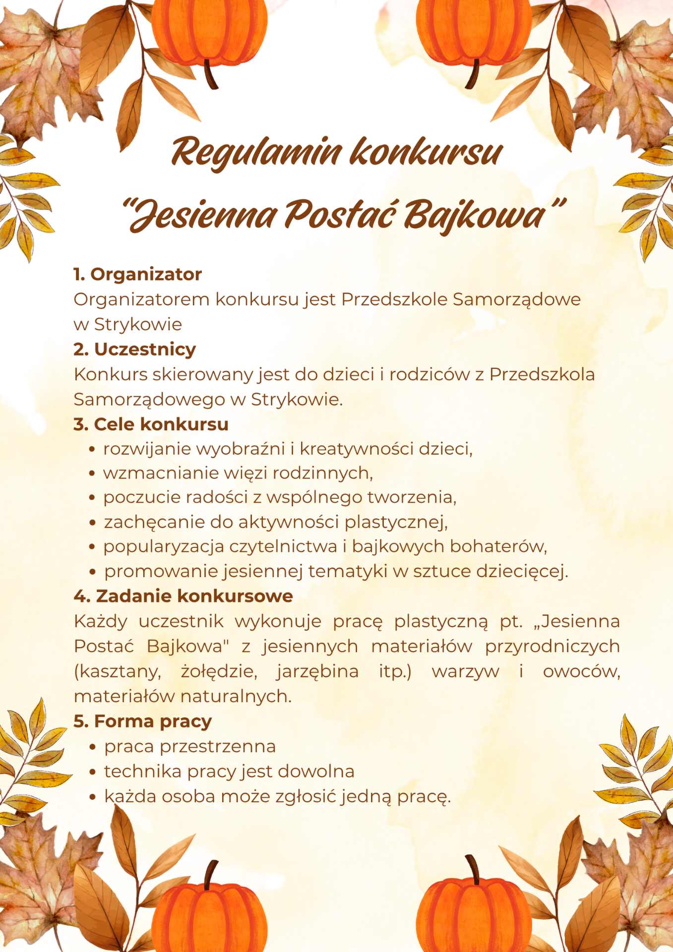 Zachęcamy dzieci i rodziców do wzięcia udziału w przedszkolnym konkursie plastycznym.Szczegóły konkursu w regulaminie.